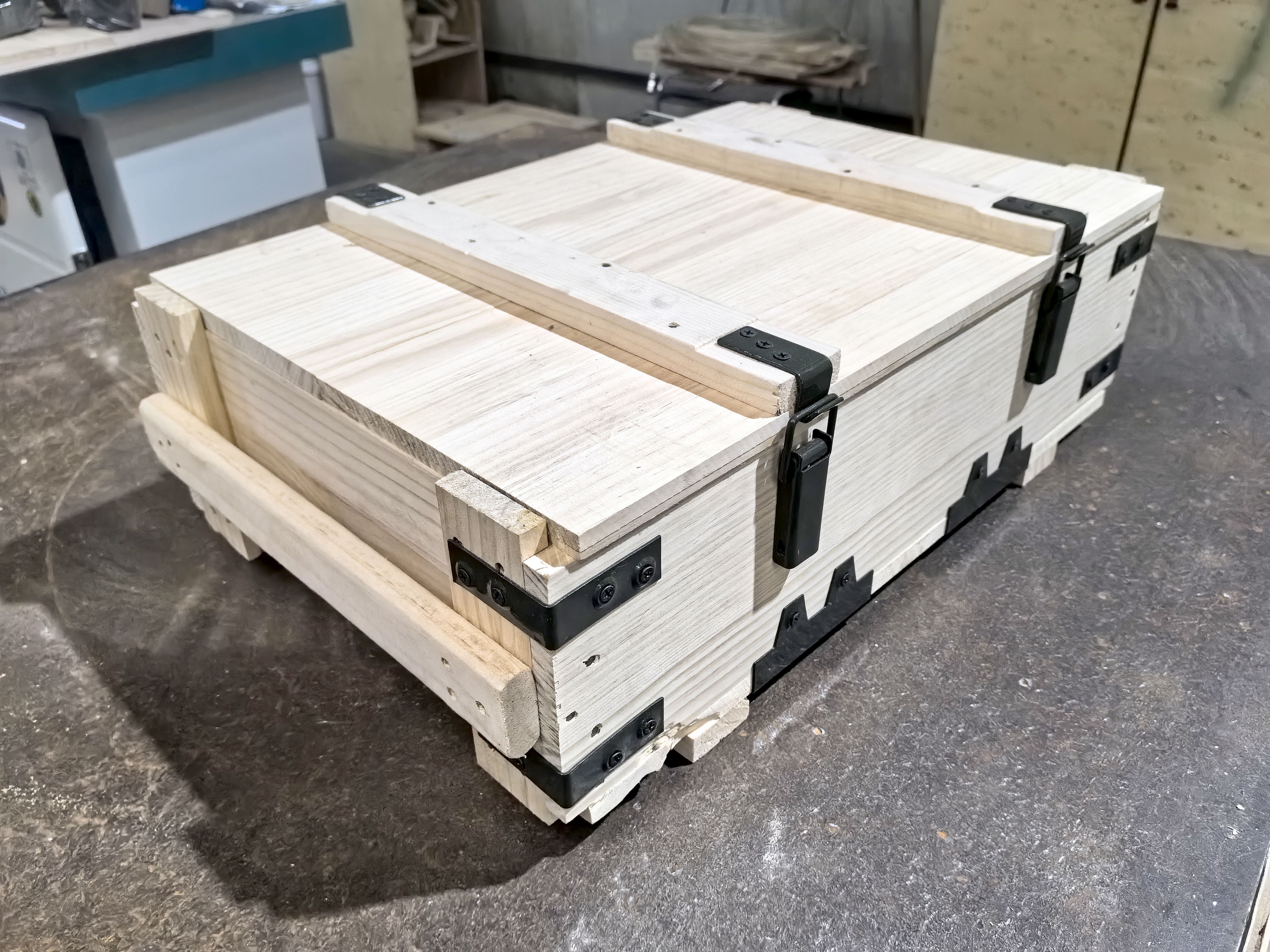 材質(zhì):7mm-12mm優(yōu)質(zhì)膠合板(整芯楊木)、冷軋鍍鋅鋼帶。